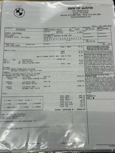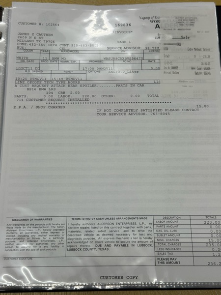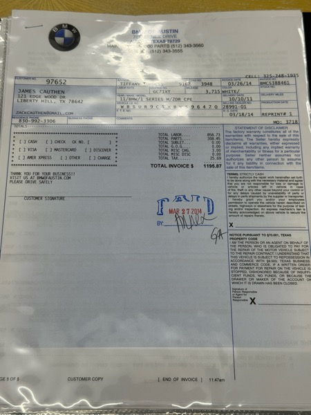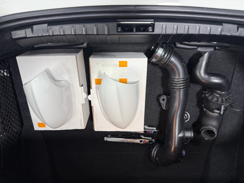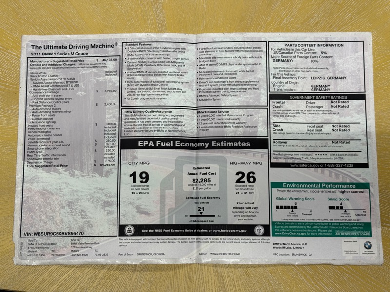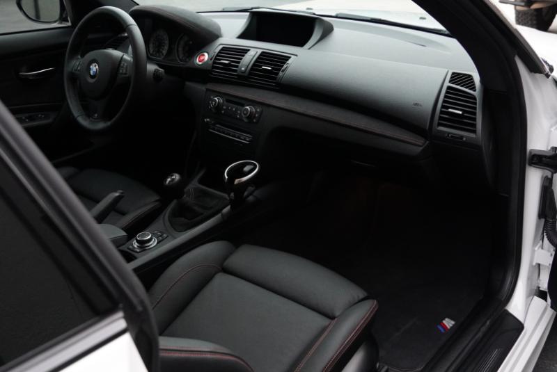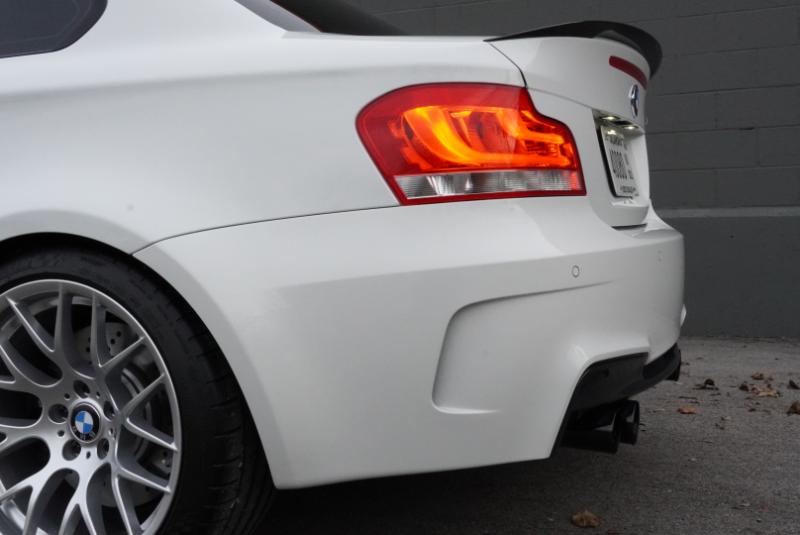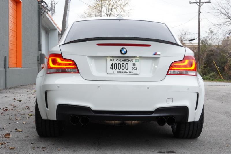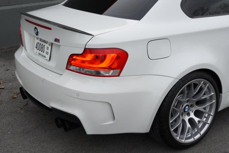 Two owner 4K MILE 2011 BMW 1M. This like new BMW 1M is as clean underneath as it is on the Alpine White exterior and Boston Black interior. Optioned with the convenience package, which give you park distance control and keyless entry, as well as the Premium Package 2, heated front seats, Harmon Kardon surround sound with smartphone integration, and BMW Apps. MSRP of $54,085. Just serviced at BMW of Austin and installed new Michelin Pilot Super Sport tires. The car was further enhanced with a carbon fiber spoiler, carbon mirrors, gloss black side markers, and an excellent sounding exhaust by Meisterschaft. The crack prone factory charge pipes have been changed to an aftermarket metal pipe. Included in the sale are every service invoice from both owners, the original owner's manual, under floor tool kit (complete), original white mirrors, original chrome side markers, the original OEM charge pipes, and two keys.