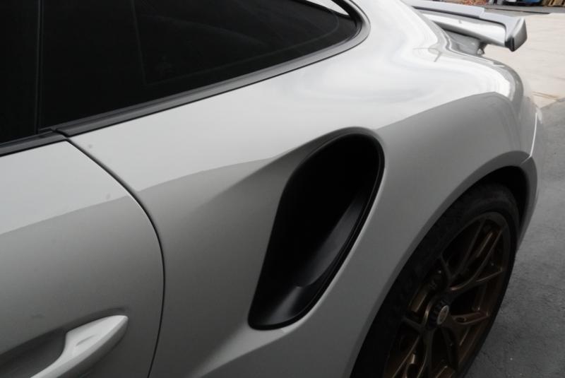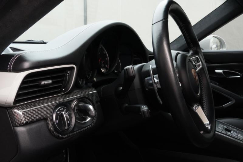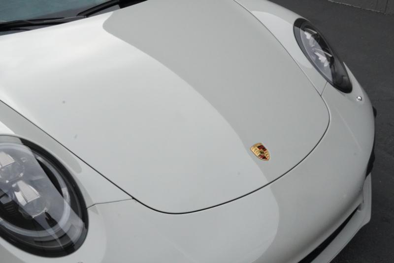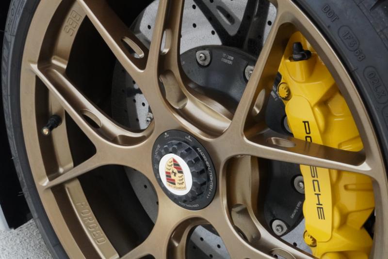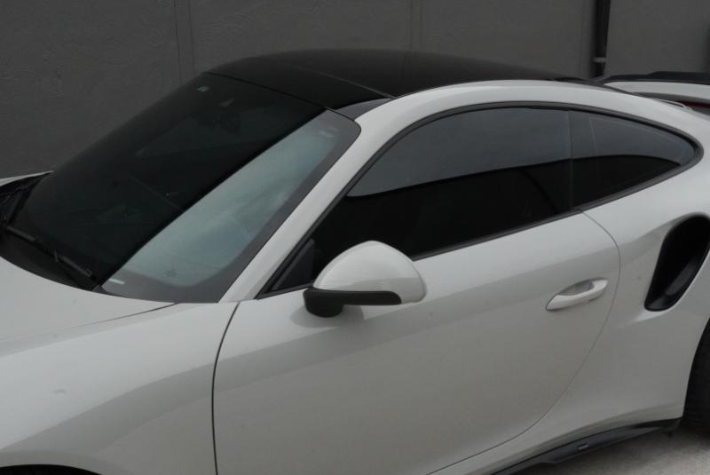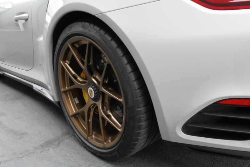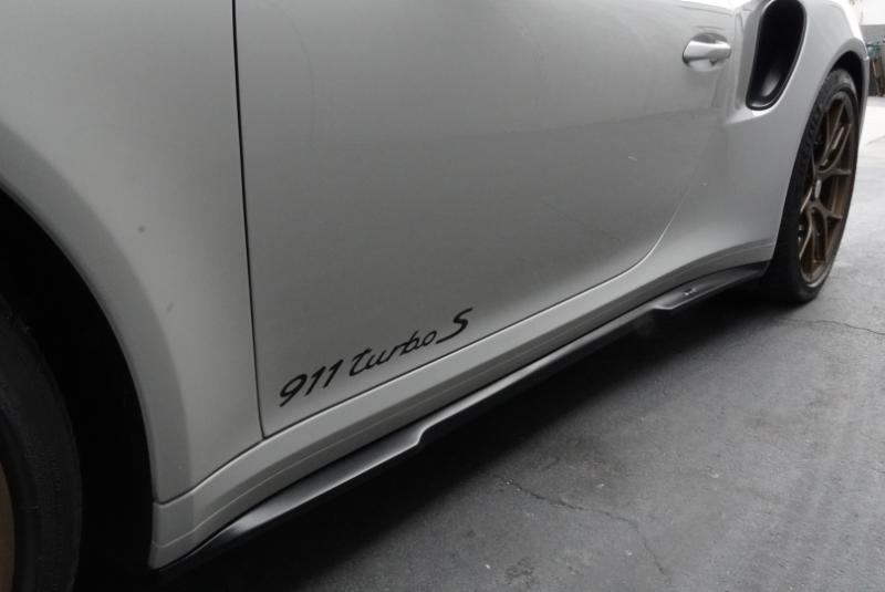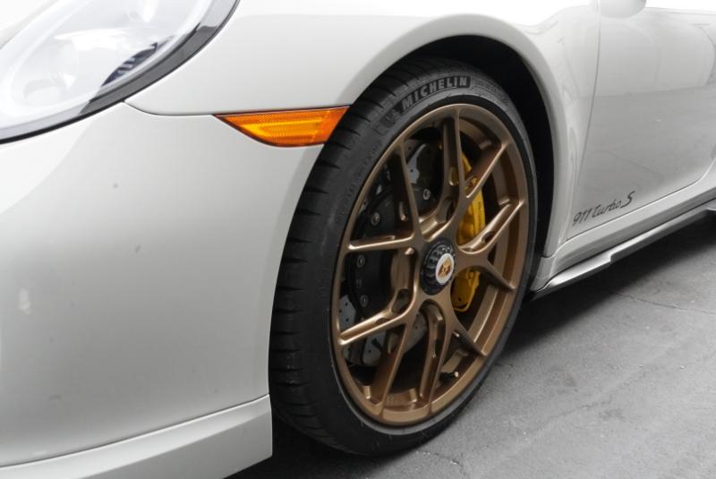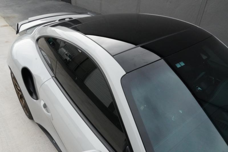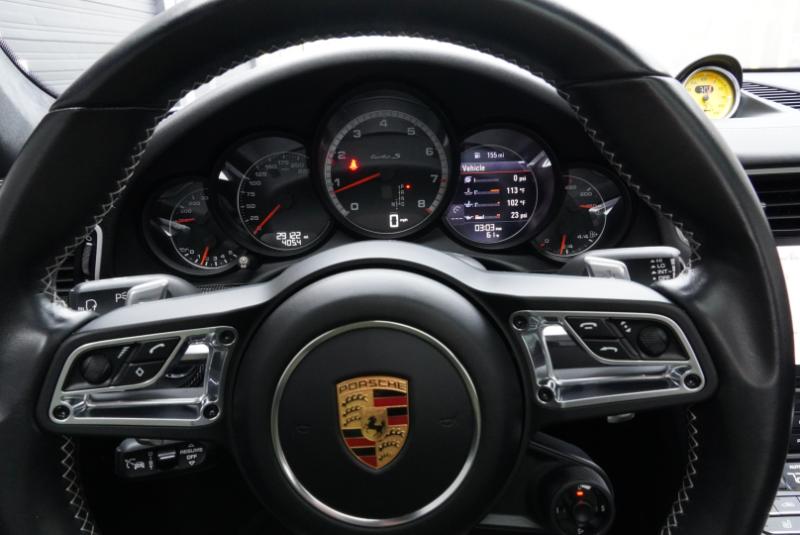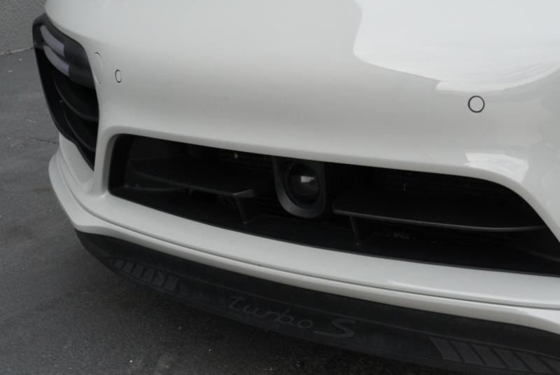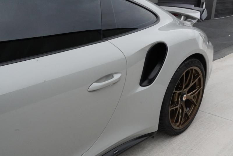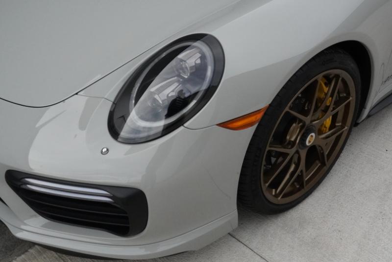 2018 Porsche 911 Turbo S, 991.2 in Chalk exterior with full front PPF over Black leather with Chalk extended deviated stitching. This Turbo S is well optioned with Carbon ceramic brakes with yellow calipers, carbon fiber interior trim, adaptive cruise control, LED headlights in Black with PLDS, 18-way adaptive front sport seats, Burmeister Surround Sound System, pedals and footrest in aluminum, rear center tunnel cover in leather, Porsche Entry and Drive, and Electric Slide and tilt sunroof. Further enhancements have been added to the car with Moshammer side skirts and rear wing, BBS FI-R EVO center lock wheels in Matte Metallic Bronze wrapped in like new Michelin Pilot Sport 4 S tires, Fabspeed Valvetronic Super Sport X-Pipe exhaust with remote and black tips (sport cat version) and hardwired for radar detection.
